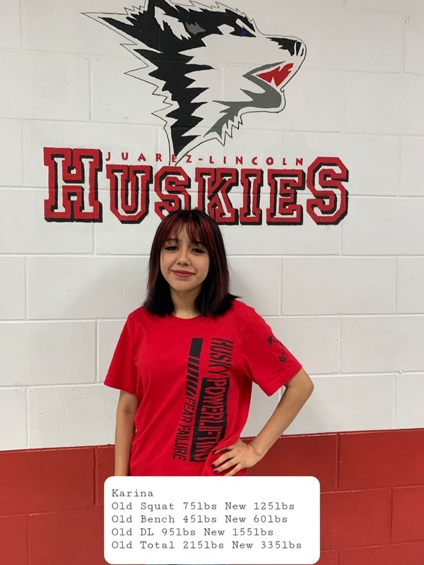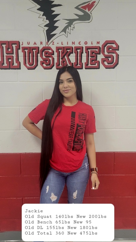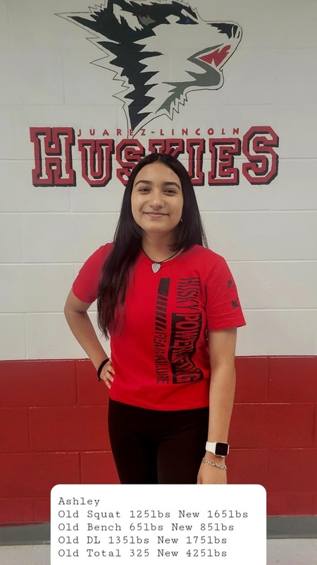 The Husky girls powerlifting team has achieved remarkable accomplishments, showcasing their strength, determination, and dedication. Individually, the girls on the powerlifting team have made significant strides in their personal records and overall performance. They continuously push their limits, setting and surpassing their own goals, and inspiring others with their progress. The girls' powerlifting team serves as inspirational role models for other aspiring female athletes. Through their achievements, they break down barriers and stereotypes, encouraging more girls to participate in powerlifting and pursue their athletic dreams. The accomplishments of the girls' powerlifting team demonstrate their outstanding talent, hard work, and resilience. They have proven that gender is no barrier to success in powerlifting and have paved the way for future generations of strong, empowered female athletes. These girls are on the road to STATE!!!! If you are interested in being a part of this sisterhood and establishing a new tradition of champions, please contact Coach Tamez and Coach Melendez.